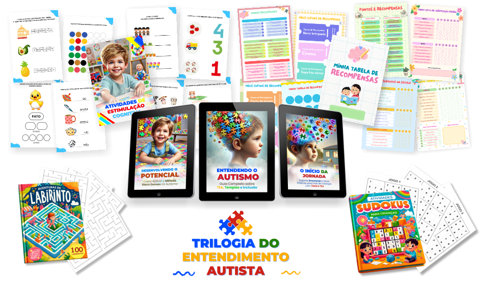 Estamos oferecendo a Trilogia do Entendimento Autista, composta por três guias completos que ajudam pais e cuidadores a apoiar o desenvolvimento de crianças com TEA. Os guias abordam desde a comunicação até o comportamento e a inclusão social, com métodos práticos e comprovados, além de quatro bônus exclusivos, incluindo atividades de estimulação cognitiva e uma tabela de recompensas personalizada.